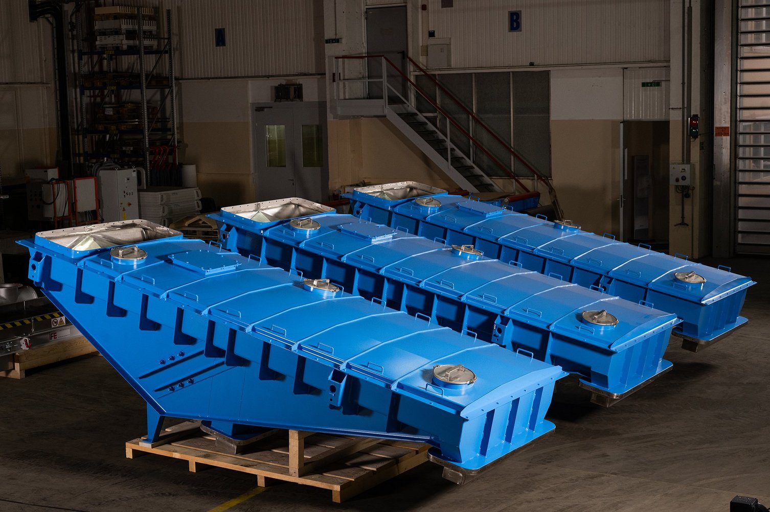 Les goulottes d’alimentation vibrantes IFE avec entraînement à balourds s’utilisent pour l’extraction de trémies et le transport de matériaux en vrac. Elles sont particulièrement avantageuses dans le cadre du transport de matériaux sur de longues distances et conviennent également au transport de matériaux de faible densité en vrac. Les goulottes d’alimentation possèdent une structure soudée et sont entraînées par deux moteurs déséquilibrés IFE ou, en version pour charges lourdes, par des excitateurs à balourds IFE.